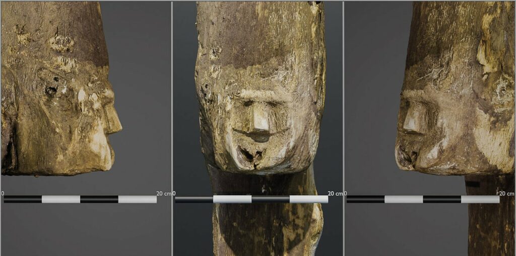 Beam with Carved Human Face Retrieved from Polish Lake