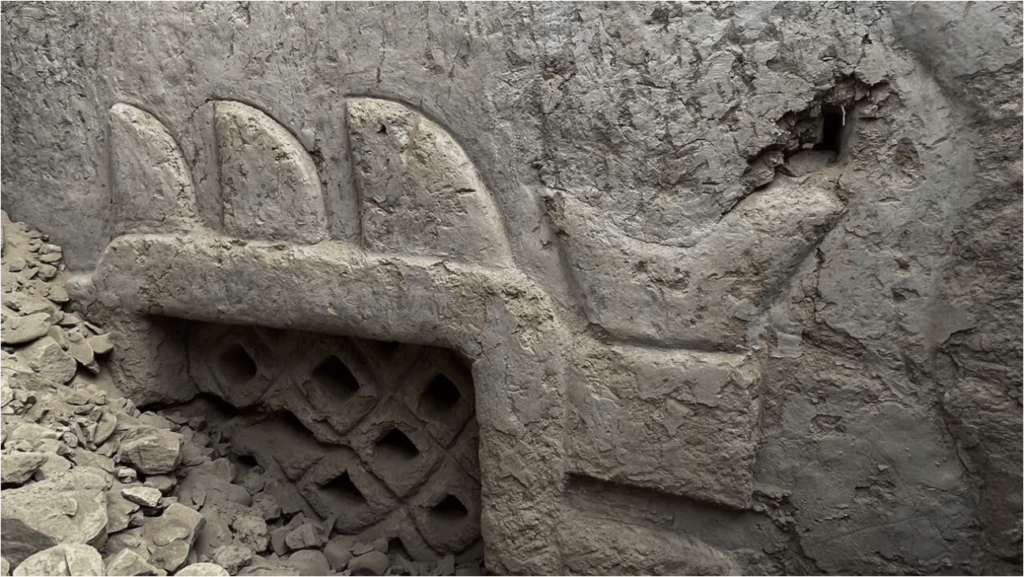 HUACA YOLANDA, PERU—Peruvian authorities announced the discovery of a uniquely decorated ancient wall at the site of Huaca Yolanda, France 24 reports. A team from the Pontifical Catholic University of Peru led by archaeologist Ana Cecilia Mauricio was excavating a pre-Inca temple complex when they unearthed a section of the 16-foot-long, 6-foot-high wall, which was covered with relief carvings and traces of blue and yellow pigment. Its facade was adorned with nature themes and motifs that included fish, stars, plants, and fishing nets. Mauricio called the discovery unprecedented in Peruvian archaeology, as no other walls with similar artwork or iconography have ever been found in the region. Judging by its design and decorative style, researchers estimate that it may be 3,000 to 4,000 years old, which means it dates to a transformative period when the very first complex societies were forming along Peru’s northern coast. Archaeologists are hoping further excavations will provide new information about the little-known ancient pre-Inca civilization that inhabited this area. To read about another ancient temple decorated with vibrant wall paintings, go to "Peru's Lost Temple."