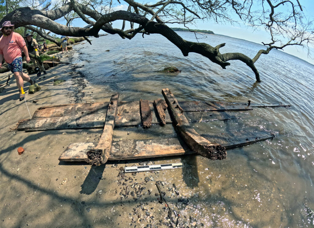 BRUNSWICK TOWN, NORTH CAROLINA—According to a statement released by East Carolina University, a team from the university’s Program in Maritime Studies recently identified four shipwrecks along the waterfront at the Brunswick Town/Fort Anderson State Historic Site (BTFA). Brunswick was a major pre–Revolutionary War port on the Cape Fear River until it was razed by British troops in 1776. Later, during the Civil War, Fort Anderson was built on the remnants of the old village. One of the submerged ships was likely sunk intentionally as part of a land reclamation project, given its location immediately next to a colonial wharf. A second ship was probably an eighteenth-century flatboat, a vessel used to transport people and goods, while a third remains unidentified. Researchers have tentatively identified the fourth wreck, however, as that of the Spanish privateer La Fortuna, originally from Cuba. Wood samples indicate that it was constructed from either Monterey or Mexican cypress, which only grew in the Spanish colonial territories of southern California and central Mexico. Historical accounts record that La Fortuna exploded and sank off the shore of Brunswick Town when it attacked the settlement in September 1748 during King George’s War. “We are extremely excited about these important sites, as each one will help us to better understand the role of BTFA as one of the state’s earliest colonial port towns,” said project co-leader Jason Raupp. To read about artifacts recovered from a tavern in Brunswick Town that burned down in the 1760s, go to "Around the World: North Carolina."